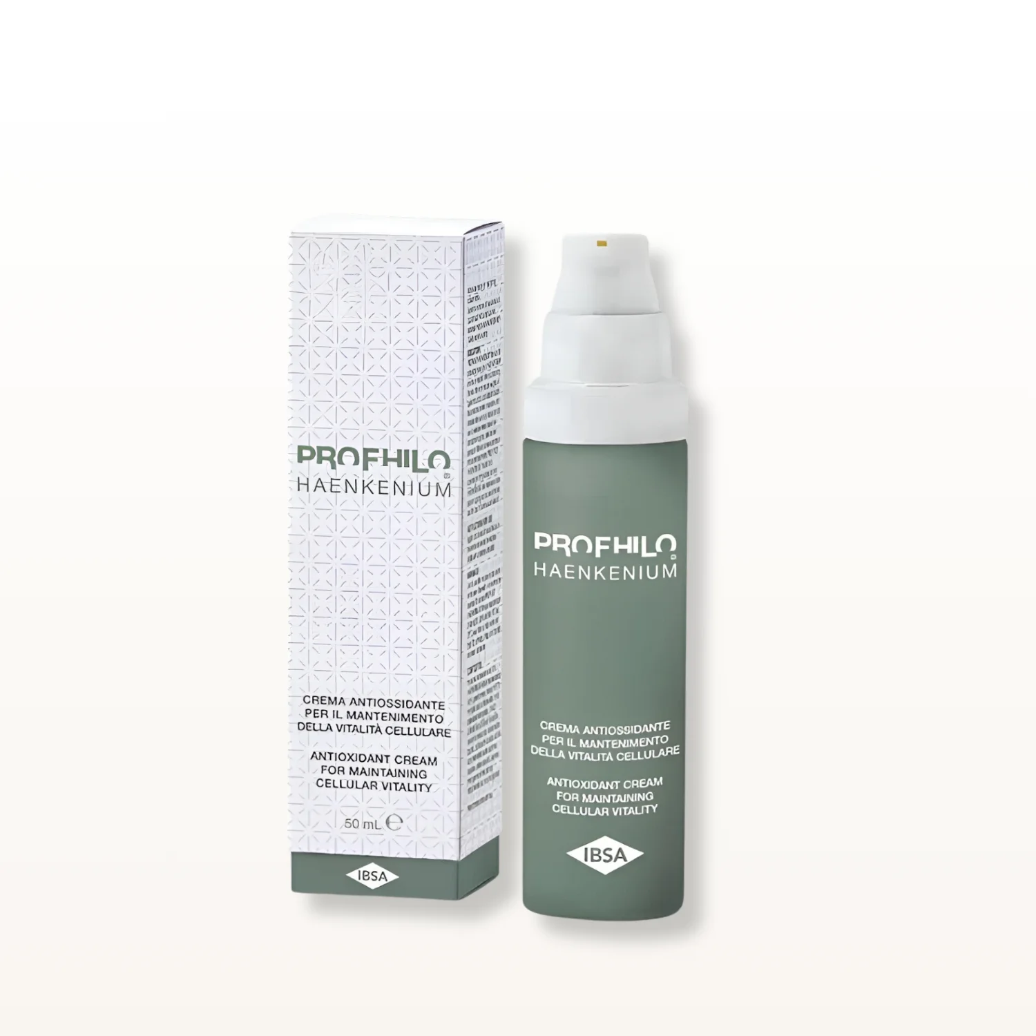 Profhilo Haenkenium Cream, a topical formulation that provides immediate skin hydration, natural antioxidant protection, and long-term accumulative skin rejuvenation results. Salvia Haenkei extract and hyaluronic acid (HA) complex are both present in the cream. This multifunctional skincare product protects, restores, and enhances the health of skin cells.